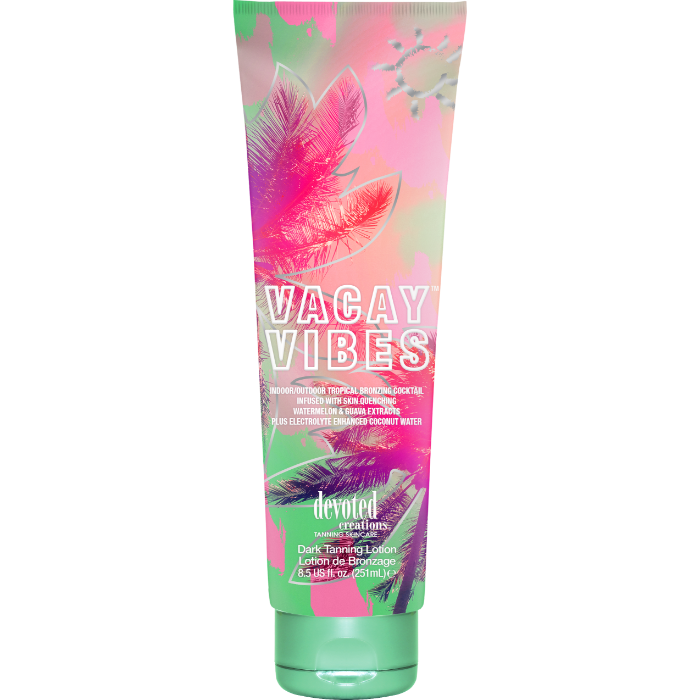 Met deze vacay vibes waan je je op een heerlijk tropisch eiland. De 10-voudige DHA, natuurlijke en cosmetische bronzers geven je een mooie bruine kleur.  Gaat  kleurvervaging van tatoeages tegen.